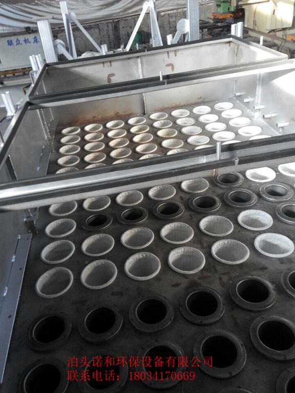 采用長袋離線脈沖除塵器 , 除塵效率達到99%以上 , 共有 2×10個箱體 , 每個積灰箱下部設有振打器和電動卸灰閥 , 設有兩條切出刮板機。過濾面積: 5600m2, _大過濾風速: 1104m /min。